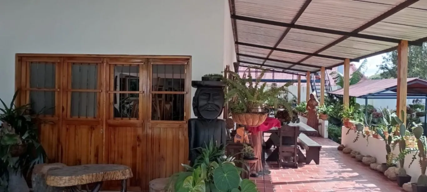 Consta de: Jardín, garaje, sala exterior, sala comedor, cocina, patio, baño, y 4 habitaciones